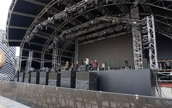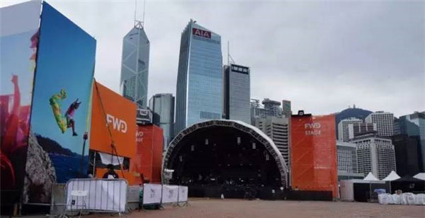 音樂節(jié)場地處于鬧市區(qū),附近有不少建筑物,況且主場地正后方就是香港大會堂,因此噪聲控制方面非常關(guān)鍵。工程師在前期設(shè)計(jì)時就對場地進(jìn)行預(yù)測和計(jì)算,以便將噪聲對周邊環(huán)境的影響降到最低。Harbourflap和FWD兩個主舞臺相鄰,且舞臺結(jié)構(gòu)都呈貝殼形。主擴(kuò)均采用了頂級的J-系列,電音舞臺主擴(kuò)采用的是V-系列,而Club Minky劇場選用了Y-系列。