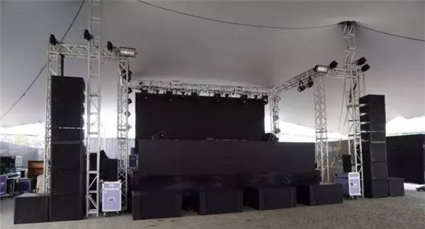 FWD舞臺左右主擴(kuò)聲吊掛的也是J8+J12組合,搭配J-SUB低音,M4為返送音箱擺放在地面,臺唇補(bǔ)聲采用的也是Y7P。J-系列具有卓越的清晰度、較強(qiáng)的細(xì)節(jié)表現(xiàn)力,超強(qiáng)的指向性控制能力,是任何大型擴(kuò)聲應(yīng)用的最佳選擇。而且其吊掛系統(tǒng)非??旖萸乙子诎惭b。