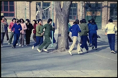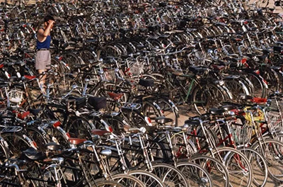1986年,一位市民在茫茫車海中尋找自己的自行車