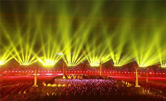 這次文藝演出采取超大型LED屏、聲光電技術和現場文體表演相結合的手法,將各種獨具崇左特色的文化元素呈現出來,珠江燈光尊能系列在這場精彩斑斕的視覺盛宴中起到了不可或缺的角色,充分展現了多彩的少數民族風情文化特色與魅力。