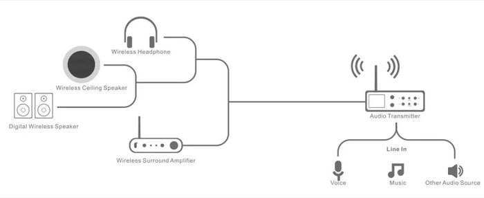 該系統(tǒng)為2.4GHz無線背景音樂系統(tǒng)或廣播系統(tǒng)開辟了一個全新的領(lǐng)域,音頻模塊體積小,應(yīng)用廣泛,可以輕松嵌入耳機、放大器、揚聲器和收發(fā)器中,使每個家庭、咖啡館、餐廳、購物中心都可以建立自己可靠的無線背景音樂系統(tǒng)/廣播系統(tǒng)。