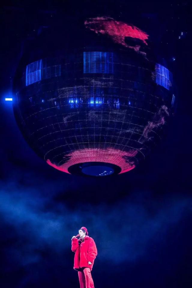 為了配合火星元素,本次演唱會舞臺中央以LED球作為設(shè)計中心,開場華晨宇從中緩緩降落,宛如從火星降落的少年,星球畫面隨現(xiàn)場氣氛變換,整個舞臺在視覺效果上像是漂浮的星空,浪漫奇幻。