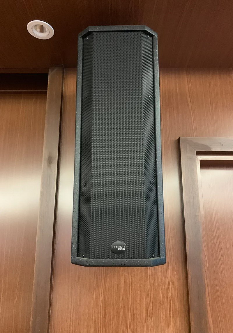 采用8只CF-26音箱分別固定安裝于4間會議室的墻壁,CF-26采用專利設計且具備高效率高功率的MISSION專業驅動,其較寬的頻帶即使在聲壓極高的情況下音質仍然很清晰,實現自然的人聲再現。
